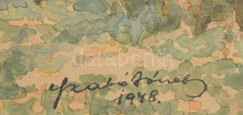 Szabó József (1889-1955): Őszi lombok, 1948. Akvarell, papír, jelzett. Üvegezett, dekoratív, kissé sérült fakeretben. 32,5×50,5 cm.<a href="https://www.darabanth.com/hu/gyorsarveres/435/kategoriak~Festmenyek-es-grafikak/Festmenyek-es-grafikak~500001