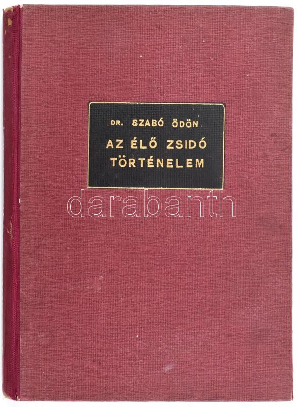 Szabó Ödön: Az élő zsidó történelem. Bp.,1942, Fémes Á. Könyvnyomda, 238+1 p. Kiadói kopott félvászon-kötés, a hátsó borítón sérülésnyommal, de belül jó állapotban.