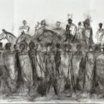 Szalay Pál (1953-2015): Lovasok. Szén, papír. Jelzés nélkül. Hátoldalán tanulmányrajzok. Hajtva. 70×100 cm