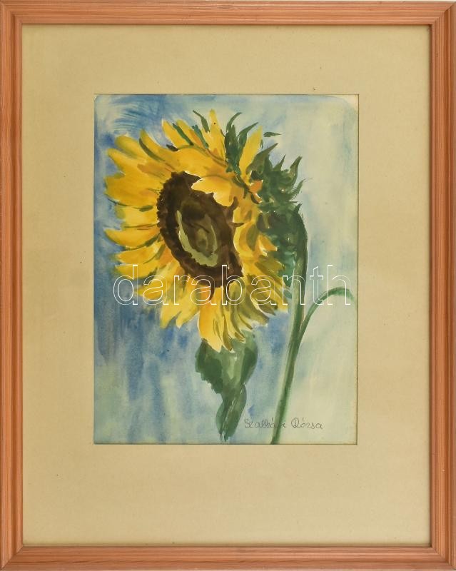 Szalkári Rózsa (1936-2017): Napraforgó. Akvarell, papír. 233×24 cm Keretben.<a href="https://www.darabanth.com/hu/gyorsarveres/421/kategoriak~Festmenyek-es-grafikak/Festmenyek-es-grafikak~500001/Szalkari-Rozsa-1936-2017-Napraforgo-Akvarell-papir-233