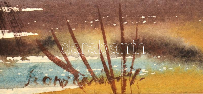 Szamosvári József (1931-): Vízpart (Balaton). Akvarell, papír, jelzett, hátoldalán Képcsarnok Vállalat címkéjével, üvegezett fakeretben, 31×46 cm<a href="https://www.darabanth.com/hu/gyorsarveres/428/kategoriak~Festmenyek-es-grafikak/Festmenyek-es-g