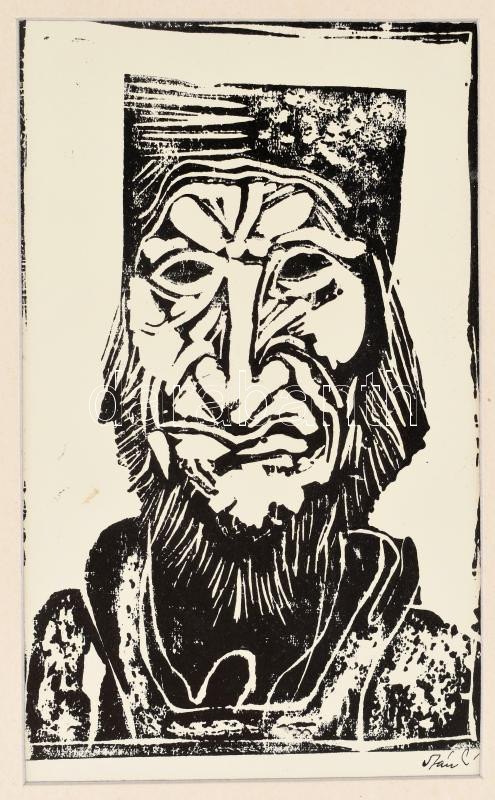 Szász Endre (1926-2003): Férfi fej. Linómetszet, papír, jelzett, paszpartuban. 18×11 cm<a href="https://www.darabanth.com/hu/gyorsarveres/430/kategoriak~Festmenyek-es-grafikak/Festmenyek-es-grafikak~500003/Szasz-Endre-1926-2003-Ferfi-fej-Linometszet