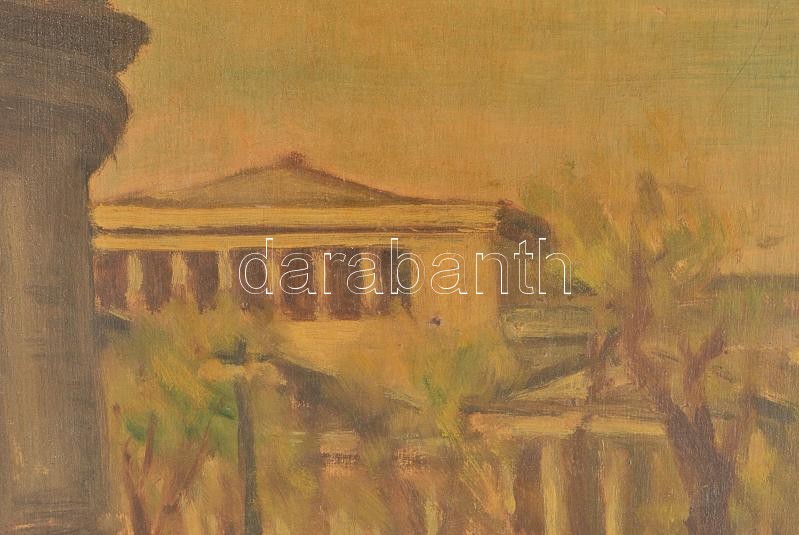 Szász Károly István (1909-1979): Hősök tere a Szépművészeti Múzeummal, Budapest. Olaj, fa, jelezve jobbra lent. Kissé sérült. Dekoratív fakeretben, 40×49 cm / Oil on wood, signed lower right, slighty damaged, framed.<a href="https://www.darabanth.co