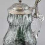 Szecessziós üveg söröskorsó ón fedéllel, kis kopásnyomokkal, m: 20 cm<a href="https://www.darabanth.com/hu/gyorsarveres/421/kategoriak~Porcelan-keramia-uveg/Uvegtargyak~500007/Szecesszios-uveg-soroskorso-on-fedellel-kis-kopasnyomokkal-m-20-cm~II2675