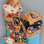 Szécsi Kerámia Budapest: Hímző menyecske. Színes mázakkal festett fali kerámia. Jelzett. Hibátlan. m: 30 cm
