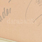 Szegő Gizi (1902-1985): Budai II László (1928-1983), az Aranycsapat játékosa által aláírt portréja! Jelzett (gis), 20×14 cm Üvegezett keretben / Autograph signed portait of László Budai, football player of the Hungarian Golden Team.