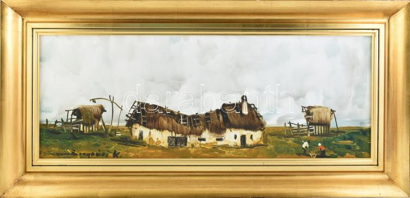 Szegvári Károly (1920-2002): Tanya. Olaj, farost, jelzett. Dekoratív, kissé sérült fakeretben, 30×80 cm<a href="https://www.darabanth.com/hu/gyorsarveres/437/kategoriak~Festmenyek-es-grafikak/Festmenyek-es-grafikak~500001/Szegvari-Karoly-1920-2002-T