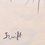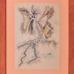 Szeift Béla (1944-2012): Lény (cím nélkül). Akvarell, tus, papír, jelzett. Kartonra kasírozva. 29×20 cm. Plexiüvegezett fakeretben, plexi sérült.