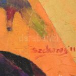 Szekeres József (1944-): Női akt. Olaj, vászon. Vakráma nélkül, feltekerve. 31,5×74 cm