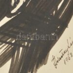 Szelestey László (1939-1991): Jelenet, 1968. Tus, papír, jelzett. Lap széle kissé sérült. 35×21 cm<a href="https://www.darabanth.com/hu/gyorsarveres/427/kategoriak~Festmenyek-es-grafikak/Festmenyek-es-grafikak~500001/Szelestey-Laszlo-1939-1991-Jelen
