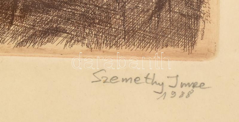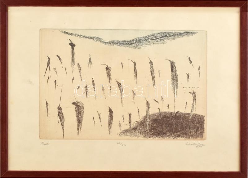 Szemethy Imre (1945-): Domb. Rézkarc, papír, jelzett, számozott (49/100). Üvegezett fakeretben. 18,5×29 cm<a href="https://www.darabanth.com/hu/gyorsarveres/414/kategoriak~Festmenyek-es-grafikak/Festmenyek-es-grafikak~500001/Szemethy-Imre-1945-Domb-
