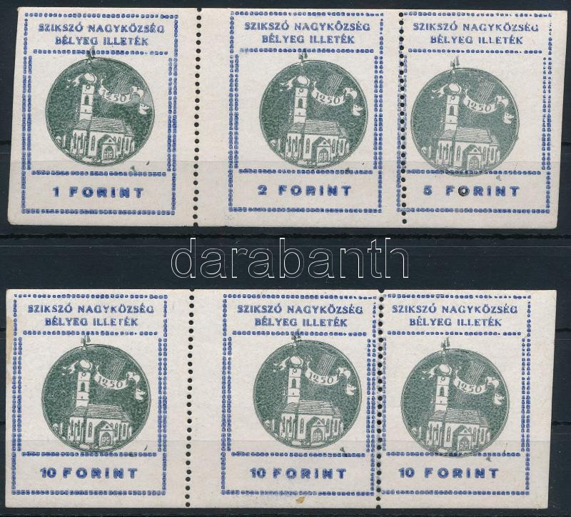Szikszó Nagyközség bélyegilleték 2 db hármascsík: 1Ft-2Ft-5R és 10Ft-10Ft-10Ft (foltos / spot)