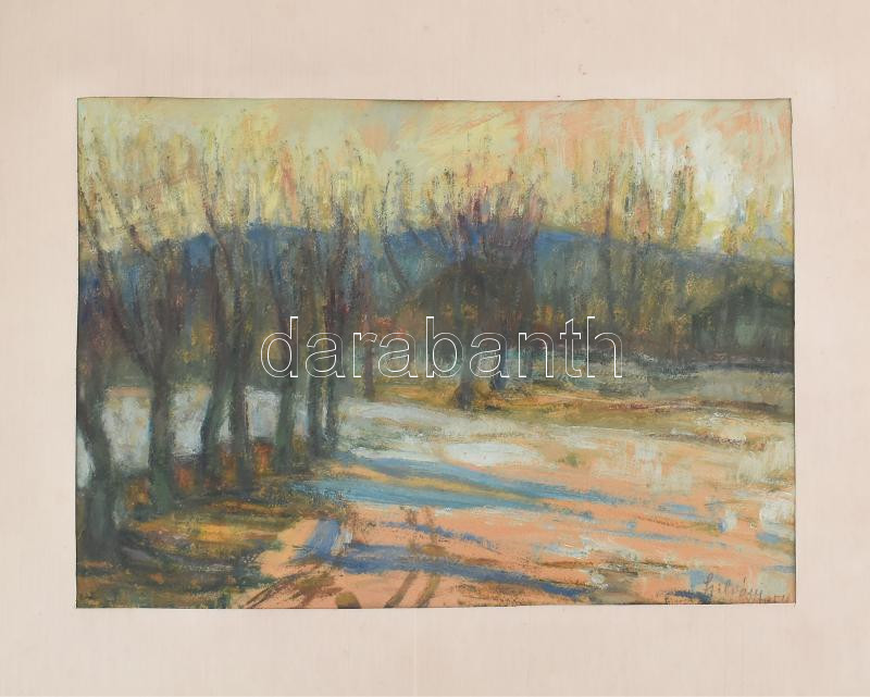 Szilvásy Margit (1898-1977): Napfényes táj, 1954. Olaj, papír, jelezve jobbra lent, paszpartuban, 29×39,5 cm<a href="https://www.darabanth.com/hu/gyorsarveres/428/kategoriak~Festmenyek-es-grafikak/Festmenyek-es-grafikak~500001/Szilvasy-Margit-1898-1