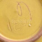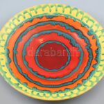 Színes mázakkal festett retró kerámia tányér, kopásnyomokkal, jelzés nélkül, d: 27 cm<a href="https://www.darabanth.com/hu/gyorsarveres/421/kategoriak~Porcelan-keramia-uveg/Keramiak~500005/Szines-mazakkal-festett-retro-keramia-tanyer-kopasnyomokkal-