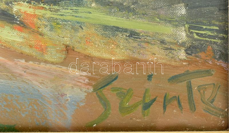 Szinte Gábor (1928-2012): Park este. Olaj, vászon, jelzett. Hátoldalán Képcsarnok Vállalat címkéjével. Üvegezett fakeretben, 60×80 cm<a href="https://www.darabanth.com/hu/gyorsarveres/435/kategoriak~Festmenyek-es-grafikak/Festmenyek-es-grafikak~5000