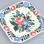 Szögletes szószos kerámia tál, Koós féle Miskolci Kőedénygyár 1890-1900, jelzett, mázkopásokkal, 27x27cm<a href="https://www.darabanth.com/hu/gyorsarveres/413/kategoriak~Porcelan-keramia-uveg/Keramiak~500005/Szogletes-szoszos-keramia-tal-Koos-fele-M