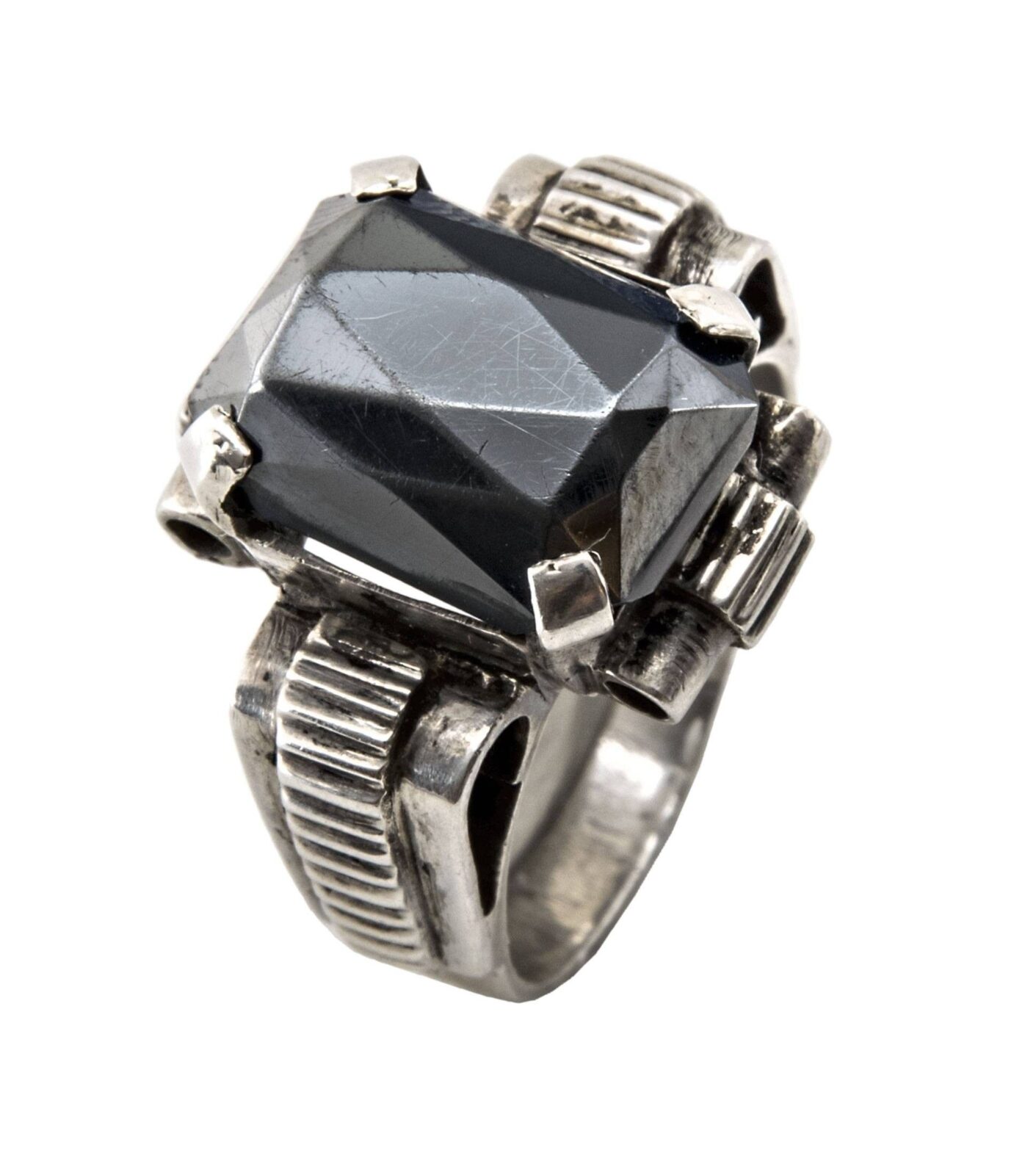 Európa, 20. század, ezüst, szalaghurok díszítéssel, fazettált dísszel, 8,2 g (bruttó), bd: 19 mm