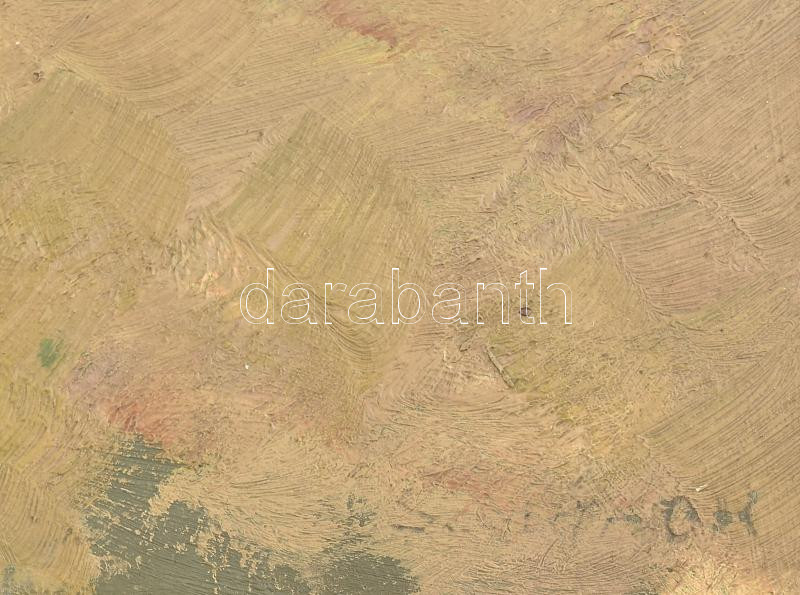 Szontágh Tibor (1873-1930): Dombos táj (kétoldalas mű, hátoldalán napos tájrészlet). Olaj, karton, jelzett. Dekoratív fakeretben. 33×46 cm.<a href="https://www.darabanth.com/hu/gyorsarveres/439/kategoriak~Festmenyek-es-grafikak/Festmenyek-es-grafika