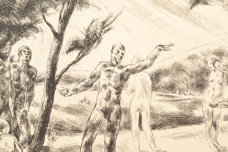 Szőnyi István (1894-1960): Árkádia. Rézkarc, papír. Hátoldalán ‘Szőnyi István hagyatéka’ bélyegzővel. Paszpartun ‘Szőnyi István hagyatéki anyaga 17/50’ felirattal és számozással. 20×27 cm<a href="https://www.darabanth.com/hu/gyorsarveres/426/kategor