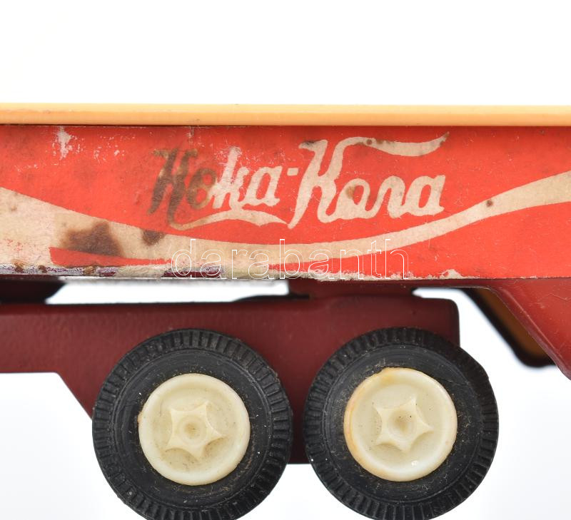 Szovjet ciril betűs Coca Cola lemez játék teherautó cca 1980 kopásokkal 15 cm<a href="https://www.darabanth.com/hu/gyorsarveres/440/kategoriak~Mutargy-papirregiseg-egyeb/Jatekok~500015/Szovjet-ciril-betus-Coca-Cola-lemez-jatek-teherauto-cca-1980-kop
