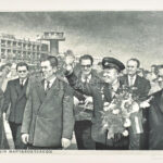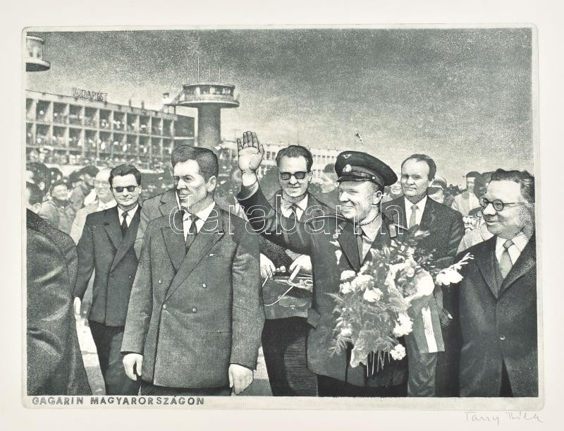 Tassy Béla (1942- ): Gagarin Magyarországon. Rézkarc, papír, jelzett, 29×39 cm<a href="https://www.darabanth.com/hu/gyorsarveres/437/kategoriak~Festmenyek-es-grafikak/Festmenyek-es-grafikak~500001/Tassy-Bela-1942-Gagarin-Magyarorszagon-Rezkarc-papir