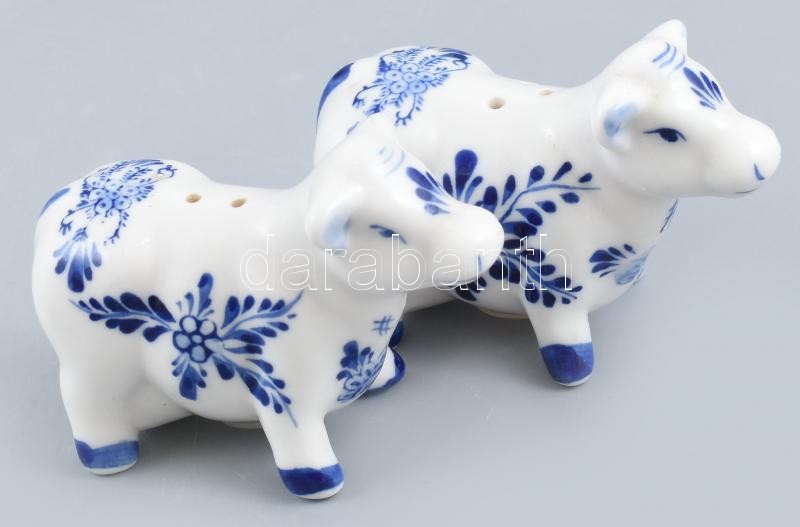 Tehén formájú holland só- és borsszóró (2 db), kézzel festett, jelzett, hibátlan, 8×6 cm<a href="https://www.darabanth.com/hu/gyorsarveres/415/kategoriak~Porcelan-keramia-uveg/Porcelan~500006/Tehen-formaju-holland-so-es-borsszoro-2-db-kezzel-festett