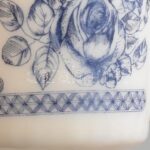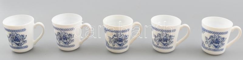 Tejüveg mokkás csésze, 5 db, matricásak, kis kopásnyomokkal