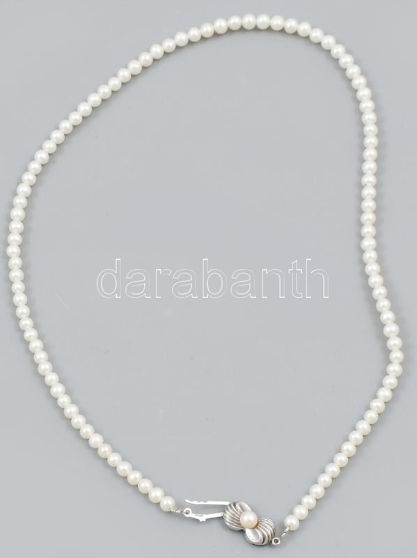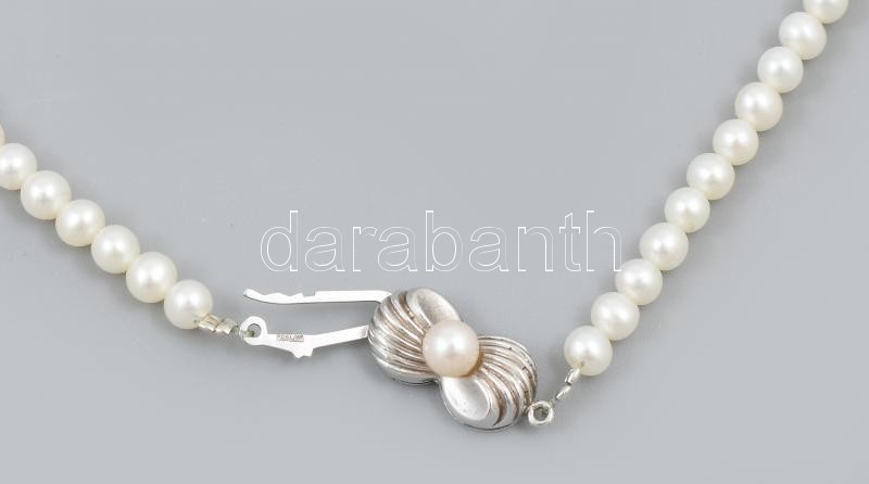 Tenyésztett gyöngy nyaklánc, ezüst (Ag) kapoccsal, jelzett, h: 44 cm<a href="https://www.darabanth.com/hu/gyorsarveres/421/kategoriak~Mutargy-papirregiseg-egyeb/Bolhapiac~500012/Tenyesztett-gyongy-nyaklanc-ezust-Ag-kapoccsal-jelzett-h-44-cm~II267520