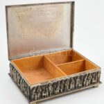 Tevan Margit (1901-1978) doboz, fém, fa betéttel, jelzett, 22x16x7 cm<a href="https://www.darabanth.com/hu/gyorsarveres/421/kategoriak~Mutargy-papirregiseg-egyeb/Mutargyak-antikvitas~500008/Tevan-Margit-1901-1978-doboz-fem-fa-betettel-jelzett-22x16x