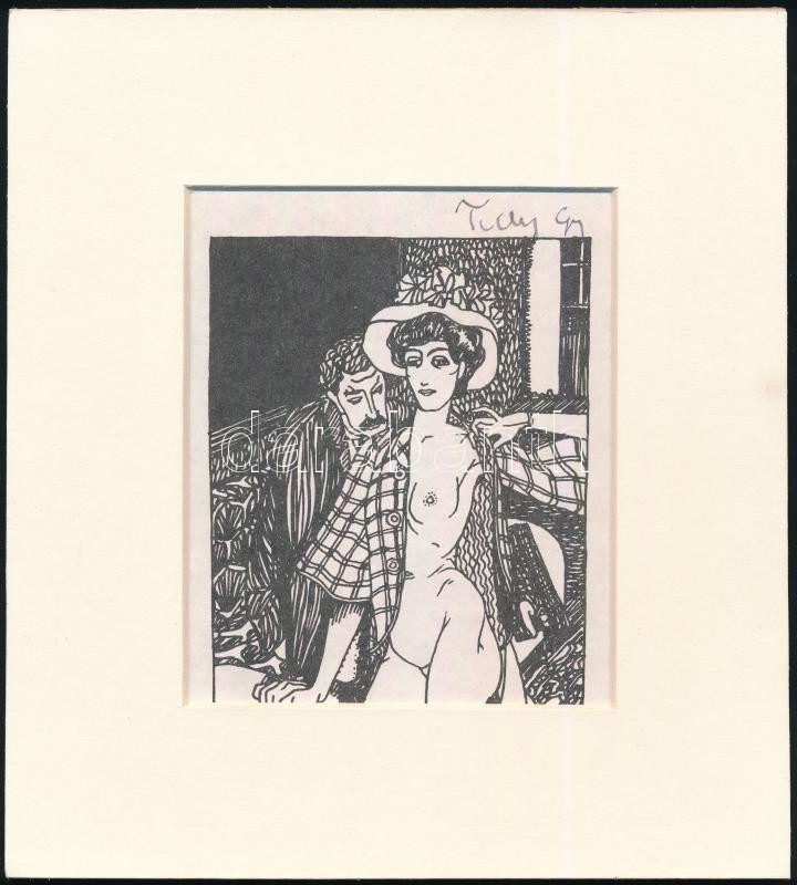 Tichy Gyula (1879-1920): Légyott, nyomat utólagos jelzéssel, paszpartuban, 11×9 cm<a href="https://www.darabanth.com/hu/gyorsarveres/410/kategoriak~Mutargy-papirregiseg-egyeb/Nyomtatvanyok~1000003/Tichy-Gyula-1879-1920-Legyott-nyomat-utolagos-jelzes