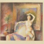 Tóth Gábor (?-): Női ülő akt. Pasztell, papír, jelzett, paszpartuban, 29×32 cm<a href="https://www.darabanth.com/hu/gyorsarveres/436/kategoriak~Festmenyek-es-grafikak/Festmenyek-es-grafikak~500001/Toth-Gabor-Noi-ulo-akt-Pasztell-papir-jelzett-paszpa