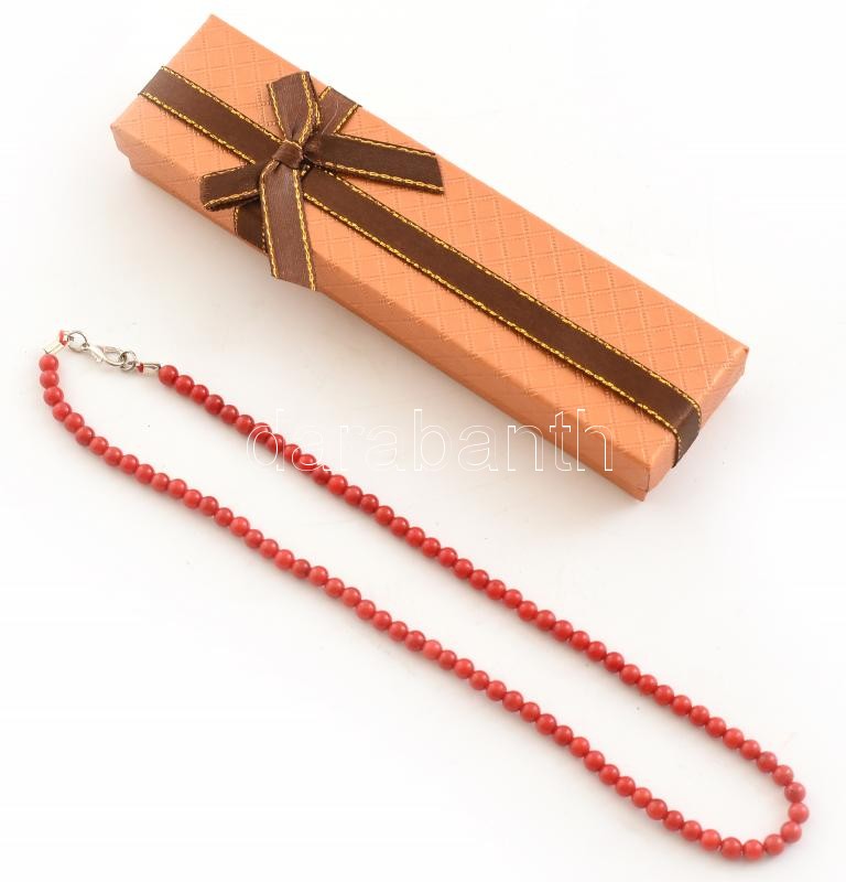 Tűzpiros színezett korall nyaklánc, h: 43 cm, díszdobozban