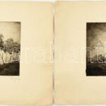 Uray János, működött a XX. sz. első felében, 2 db grafika: Dombos táj és Alföldi tanya. Rézkarc, papír, mindkettő jelzett, hátoldalán Orsz. Képkultúra Társaság, Bp., Városmajori Művésztelep bélyegzőjével, 16×24 cm<a href="https://www.darabanth.com/h