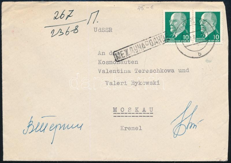 Valentyina Tyereskova (1937- ) és Valerij Bikovszkij (1934- ) szovjet űrhajósok aláírásai emlékborítékon / Valentina Tereshkova (1937- ) and Valeriy Bikovskiy (1934- ) Soviet astronauts on envelope<a href="https://www.darabanth.com/hu/gyorsarveres/4