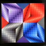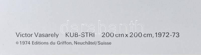 Vasarely Victor (1908-1997): KUB-STRI. Heliogravűr, papír. Neuchatel, 1974, Éditions du Griffon. Bal alsó sarkában Fondation Vasarely Aix-En-Provence szárazbélyegzőjével. 35×35 cm. / Victor Vasarely (1908-1997): KUB-STRI. Photogravure on