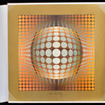 Vasarely Victor (1908-1997): VEGA-ZETT-2. Heliogravűr, papír. Jelzett. Neuchatel, Éditions du Griffon kiadása, 1975. 21×21 cm. / Victor Vasarely (1908-1997): VEGA-ZETT-2. Photogravure on paper. Signed. Neuchatel, Éditions du Griffon, 1975. 21×21 cm.