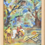 Vaskovics László (?-): Pihenő a parkban. Olaj, vászon, kartonon, fakeretben, 24×18 cm<a href="https://www.darabanth.com/hu/gyorsarveres/430/kategoriak~Festmenyek-es-grafikak/Festmenyek-es-grafikak~500003/Vaskovics-Laszlo-Piheno-a-parkban-Olaj-vaszon