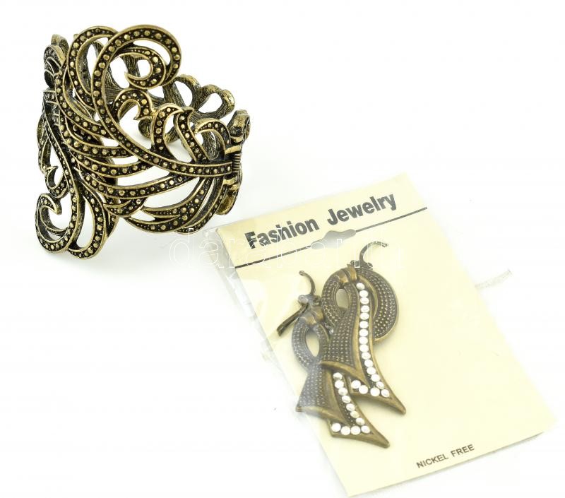Vastag fém karperec, fülbevalóval, bizsu.