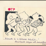 Vasvári Anna (1923-1990): ‘Bárcsak én is köztetek lehetnék…’ (OTP karikatúra). Filctoll, kollázs, papír. Jelezve jobbra lent. Vasvári Anna autográf ajándékozási soraival. Papírra kasírozva. 13,5×19 cm<a href="https://www.darabanth.com/hu/gyorsarve