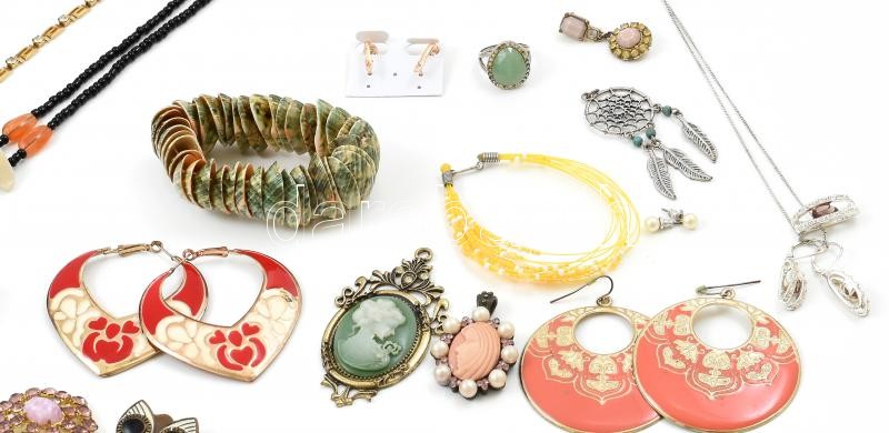 Vegyes bizsu tétel, fülbevalók, karkötők, brossok, stb., szép állapotban