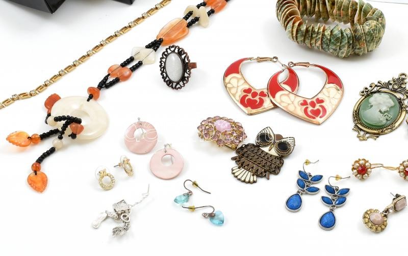 Vegyes bizsu tétel, fülbevalók, karkötők, brossok, stb., szép állapotban<a href="https://www.darabanth.com/hu/gyorsarveres/421/kategoriak~Mutargy-papirregiseg-egyeb/Bolhapiac~500012/Vegyes-bizsu-tetel-fulbevalok-karkotok-brossok-stb-szep-allapotban~