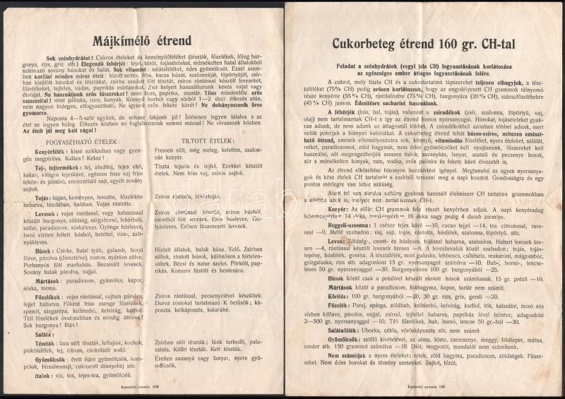 Vegyes gasztronómiai tétel: Májkímélő étrend, cukorbeteg étrend, Pomosin használati utasítás nyomttaványok, valamint Csárdás étterem vadvacsora kínálata, 1973. jan. 20, cca 1965 Gellért kávélap, Utasellátó cukrász