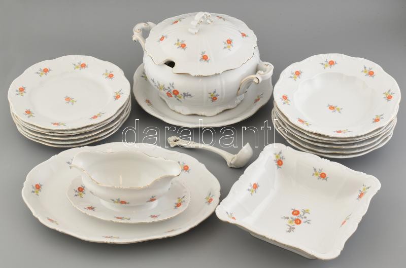 Vegyes hiányos Zsolnay étkészlet, matricás porcelán, kopott, jelzett.<a href="https://www.darabanth.com/hu/gyorsarveres/413/kategoriak~Porcelan-keramia-uveg/Porcelan~500006/Vegyes-hianyos-Zsolnay-etkeszlet-matricas-porcelan-kopott-jelzett~II2577154/