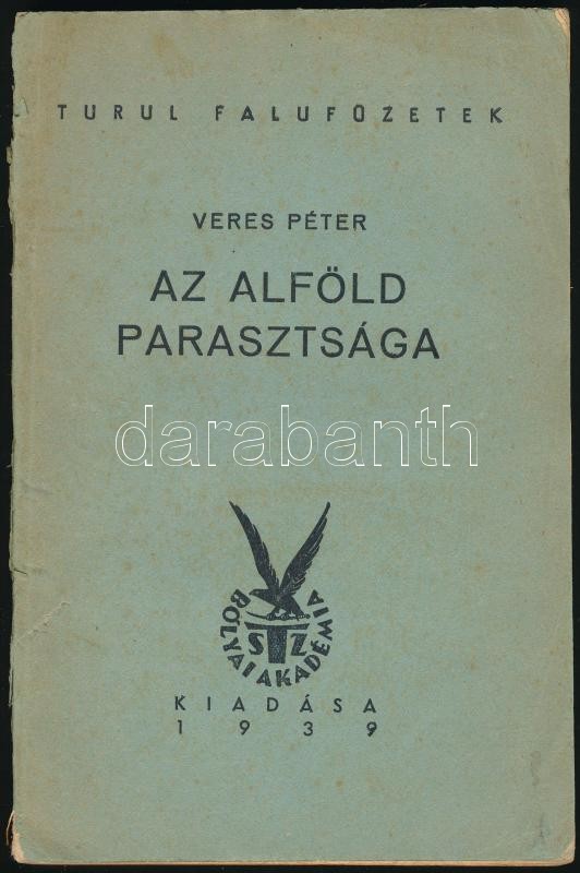 Veres Péter: Az alföld parasztsága. Turul Falufüzetk. 5. sz. Bp., 1939, Bólyai Akadémia. [Második kiadás.] Kiadói papírkötés, szakadt borítóval, hiányos gerinccel.<a href="https://www.darabanth.com/hu/gyorsarveres/410/kategoriak~Konyvek/Konyvek-Egye