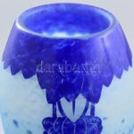Verrerie Schneider Art Deco váza. Myrtilles sorozat. Többrétegű, savmaratott, kékes színű öntött üveg váza Art Deco motívumokkal. Francia, 1925 körül Jelzett: Charder és gravírozott. Hibátlan, m: 39 cm