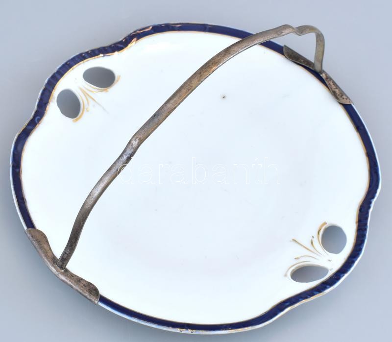 Victoria Austria porcelán tál, fém füllel, kopott, jelzett, d:25cm