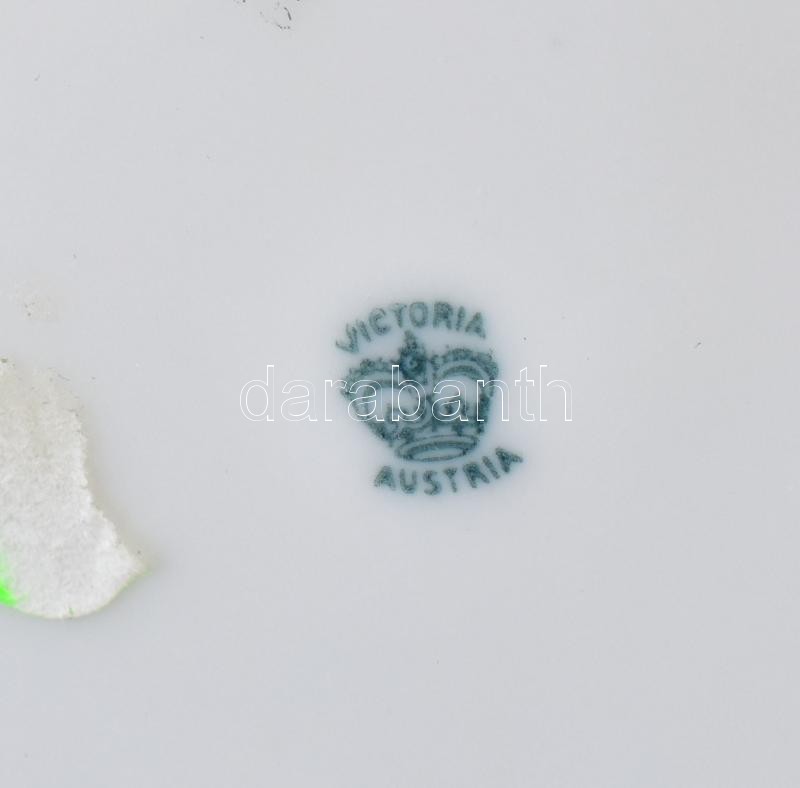 Victoria Austria porcelán tál, fém füllel, kopott, jelzett, d:25cm<a href="https://www.darabanth.com/hu/gyorsarveres/413/kategoriak~Porcelan-keramia-uveg/Porcelan~500006/Victoria-Austria-porcelan-tal-fem-fullel-kopott-jelzett-d25cm~II2578377/?utm_so