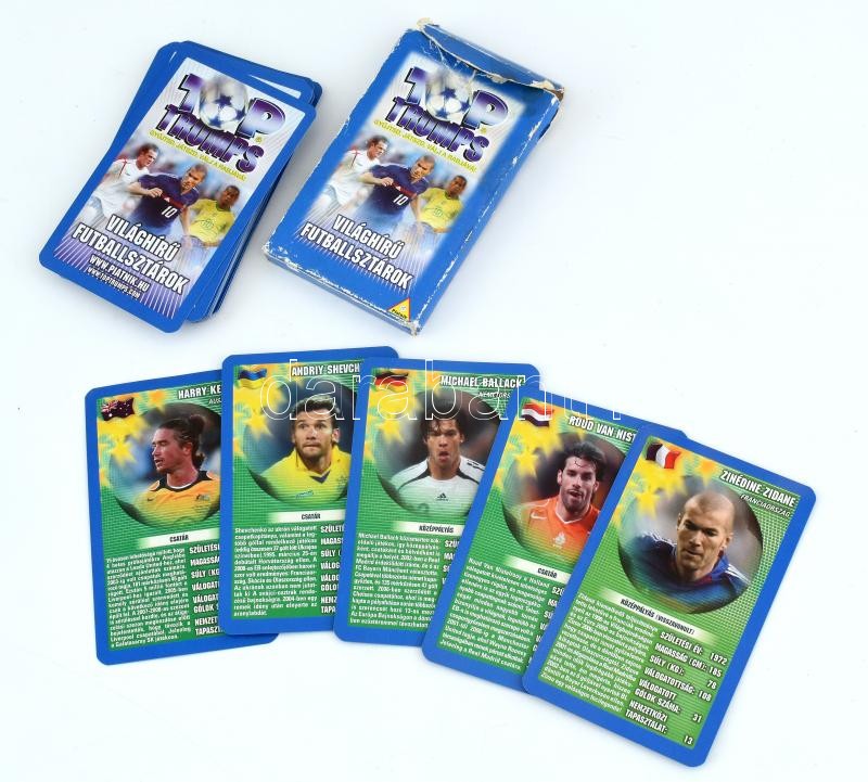 Világhírű futballsztárok, 30 db-os kártyapakli, eredeti dobozában<a href="https://www.darabanth.com/hu/gyorsarveres/414/kategoriak~Mutargy-papirregiseg-egyeb/Jatekok~500013/Vilaghiru-futballsztarok-30-db-os-kartyapakli-eredeti-dobozaban~II2596194/?u