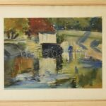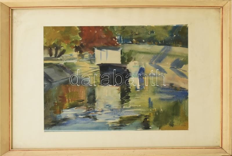 Vincze László (1934-2020): Vízparti táj (Duna?), 1968. Akvarell, papír, jelzett, üvegezett fakeretben, 29×39,5 cm<a href="https://www.darabanth.com/hu/gyorsarveres/417/kategoriak~Festmenyek-es-grafikak/Festmenyek-es-grafikak~1/Vincze-Laszlo-1934-202