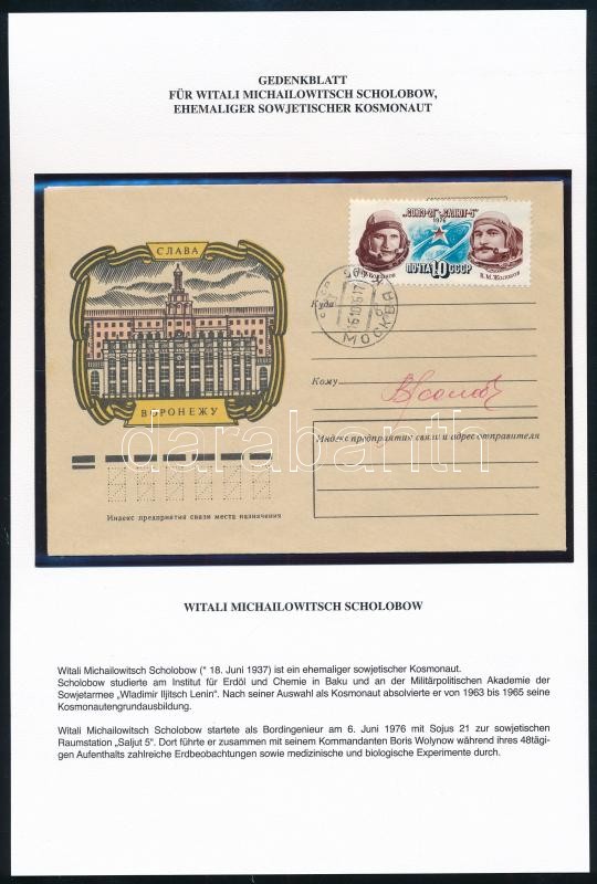 Vitalij Mihajlovics Zsolobov (1937-) szovjet űrhajós aláírásai emlékborítékon / Signature of Vitaly Zholobov (1937- ) Soviet astronaut on envelope